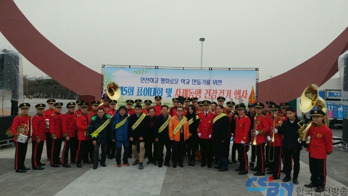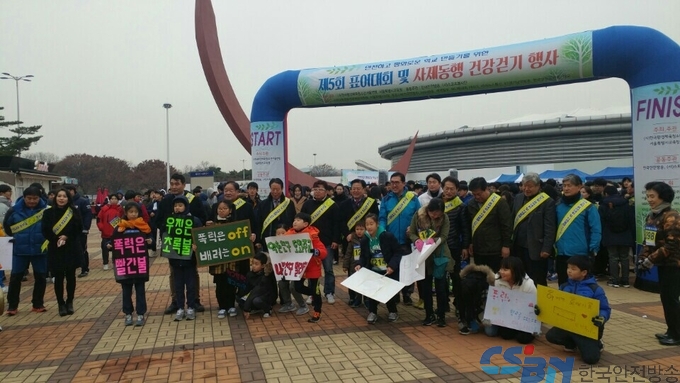 참여하여, 걷기대회와 아울러 학교폭력 예방 가두 캠페인을 펼쳤다.