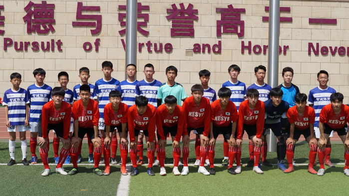 ▲ 한중 꿈나무 체육활동 한마음대회가 중국 산동성 일대에서 진행된 가운데 연태애화쌍어국제학교에서의 기념촬영 모습