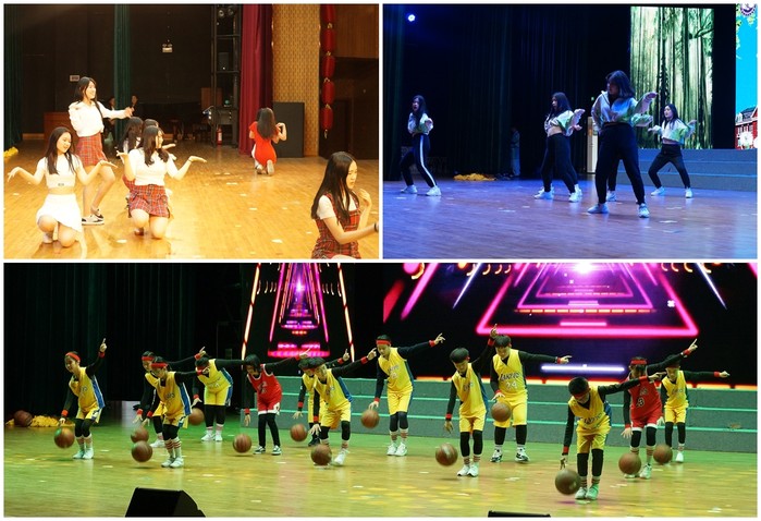 ▲ 둘째날 저녁에는 한중 학생들의 문화교류가 펼쳐졌다. (사진 좌측 위쪽부터 시계방향으로 무학중학교, 무학여자고등학교, 중국연태애화쌍어국제학교의 공연모습)