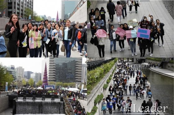 ▲ 학생들과 제자, 학부모가 하나가 되어 청계천로를 거니는 가운데 외국인 관광객과 시민들에게 뜨거운 호응을 얻었다.