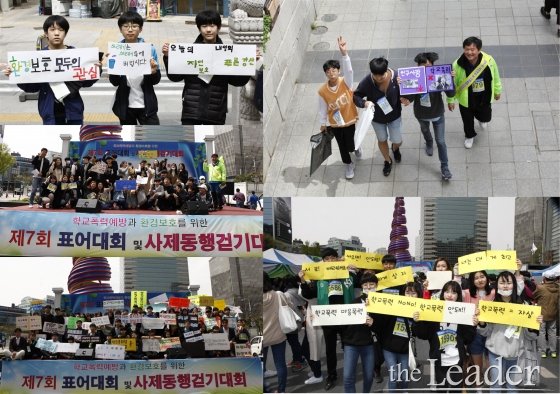 학교폭력예방을 위해 학생과 교사 그리고 학부모가 함께 걸으며 사제‧가족간의 신뢰와 책임을 공유하는 ‘제7회 학교폭력예방과 환경보호를 위한 제7회 표어대회 및 사제동행 건강 걷기대회’가 지난 15일 서울 청계광장에서 열렸다.